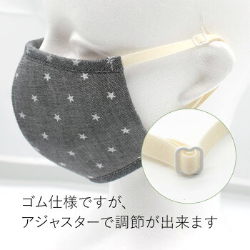 肌側には3重ガーゼ使用で内側ガーゼを挟むことが出来るポケットタイプ ゴム仕様ですが、アジャスターで調整が出来ます。